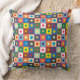 An abstract pattern made up of hand drawn spotted squares in in various color combinations on a flat colored background