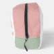 A pretty pastel abstract pattern in green, pink and brown on this cosmetic/makeup bag