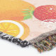 A quality printed throw has its advantages. This is a much finer weave throw than its loopier cousins, and though lighter, it is worth the investment for custom room accessorizing. The back is much prettier than the typical brown, and the fringe on the long sides very vivid, the selvage nicely done. Before photographing, I washed the throw in cold water, delicate, with a thicker woven throw the same size. On tumble dry low, this throw was dry in half the time as the other. This is a very practical quality if you use throws for furniture covers or to wrap up in frequently. The sleekness of the fabric makes it a great layer for accenting or protecting without the feeling of sitting on too much stuff. Perfect for napping or when you feel a light chill coming on. The color printing is beautiful and on this fabric, matched the design and color of my Photoshop image. This is an advantage for blending room fabrics and colors. The fringe on the short sides prints the colors from the design image and therefore varies from the side fringe. I streaked a white fractal line through the plaid pattern to give the illusion of weaving. This printed as crisp as an illusory thread, and put some white in the short side fringe, showing another advantage of print vs loomed- for artistic purposes, line lines, detail, and color integrity can be planned and preserved. My loomed throws have color limitations and more of a needlepoint texture. Print throws reproduce an exact image. The throw felt a little stiff straight out of the package, but this went away in the first delicate wash. Of course I searched the wash water for ink or bleeding and there was none.