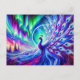 Abstract Peacock in Winter with Northern Lights Postcard