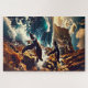 Abstract Penguins Diving - Surreal Cliff Dive Jigsaw Puzzle