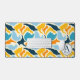Abstract Leaves Contemporary Pattern in blue, green, yellow and pink colors. Personalized table mat with template for name and monogram. Easily editable