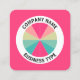 A business card template with a 12 segmented circle motif in a palette of 5 colors. The symbol is placed in a white circle with curved text company name and business type with other contact details on the other side. Ready to be customized, suitable for a variety of businesses/uses.