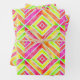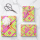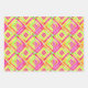 Abstract pink and yellow geometric square tiles wrapping paper sheets
