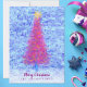 Abstract Pink Christmas Tree with Blue Brick Wall Card