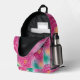 Pretty and colorful pink circles with a textured look on a background of light pink with aqua green and yellow spheres, is printed on the front, sides, and top of backpacks. Thank you for shopping at CherylsArt on Zazzle.