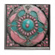 This stunning mosaic artwork features a captivating blend of turquoise and pink tiles, arranged in a mesmerizing geometric pattern. The intricate design and vibrant colors create a visually striking piece that will add a touch of modern elegance to any space. This handmade mosaic is perfect for use as a decorative wall hanging or a unique accent piece for your home or office.