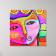 My colorful abstract digital portrait of a cat is printed on wrapped canvas