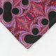 This fleece blanket features a colorful fractal pattern with a black percent sign on an abstract red, pink, and purple background.