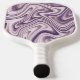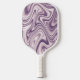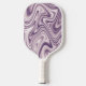 This pickleball paddle features an abstract liquid marble pattern inpurple and white.