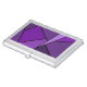 Inspired by stained glass, this stylish geometric design contains polygons in various shades of purple outlined in black. A lavender triangle slashes in from the upper right with an array of progressively darker purple quadrangles and other shapes spiraling around it from light to dark. Two dark purple shapes ground the left side of the original design.