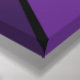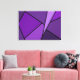 Inspired by stained glass, this stylish geometric design contains polygons in various shades of purple outlined in black. A lavender triangle slashes in from the upper right with an array of progressively darker purple quadrangles and other shapes spiraling around it from light to dark. Two dark purple shapes ground the left side of the original design.