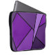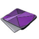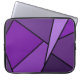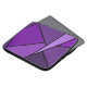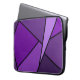 Inspired by stained glass, this stylish geometric design contains polygons in various shades of purple outlined in black. A lavender triangle slashes in from the upper right with an array of progressively darker purple quadrangles and other shapes spiraling around it from light to dark. Two dark purple shapes ground the left side of the original design.