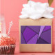 Inspired by stained glass, this stylish geometric design contains polygons in various shades of purple outlined in black. A lavender triangle slashes in from the upper right with an array of progressively darker purple quadrangles and other shapes spiraling around it from light to dark. Two dark purple shapes ground the left side of the original design.