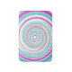 Small bath mat featuring abstract spiral design in 3 colors: white, purple, and teal.
