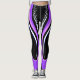 Abstract modern purple White and Black leggings design with curved lines dots and swirl patterns