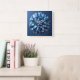 abstract ball made from irregular pyramides, metal look, blue color tones, wall clock