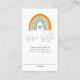 An adorable baby shower diaper raffle card. The design features a cute rainbow in shades of orange, gold, green and blue and is perfect for an event honoring a baby boy.