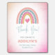 Give this cute rainbow drink mix packet to your guests as a thank you. This is perfect for a little girls birthday party and features an abstract rainbow in pink, teal and gold and is accented with a pink heart.
