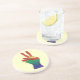 An abstract painting of the peace sign hand using colors of the rainbow, by CherylsArt, is printed on custom drink coasters. The background color can be customized. I had fun using my own hand to create this design.