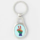 An abstract painting of the peace sign hand using colors of the rainbow, by CherylsArt, is printed on custom keychains. I had fun using my own hand to create this design.