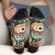 This fun Halloween socks are bright and colorful. The small print is crisp and shows the fun details. The softness of the socks feels nice on my feet and ankles. .