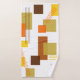 This towel set has a mid-century modern design of rectangles and lines in 1970s colors.