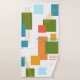 This towel set has a mid-century modern design of rectangles and lines in 1960s colors.