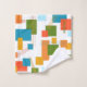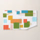 This towel set has a mid-century modern design of rectangles and lines in 1960s colors.