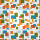 This fabric has a mid-century modern design of rectangles and lines in 1970s colors.