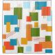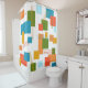 This shower curtain has a mid-century modern design of rectangles and lines in 1960s colors.