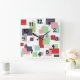 This wall clock has a mid-century modern design of rectangles and lines in 1950s colors.
