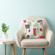 This throw pillow has a mid-century modern design of rectangles and lines in 1950s colors.