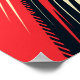 A bold abstract design featuring sweeping red and black curved lines over a light beige background. The composition combines sharp edges and segmented stripe-like patterns, creating a sense of energy, power, and high-speed motion. The interplay of contrasting colors enhances the visual impact, making it ideal for modern graphics, wallpapers, or dynamic branding concepts.
