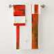 Abstract Red and White Stiped Bath Towel Set. A punch of color and bold design to accent and liven up any bathroom. Sure to fit most modern and contemporary of interiors. Mix and match with other items with similar designs such as pillows, rugs and more.