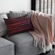 This lumbar pillow features abstract red and blue gradient stripes on black background.