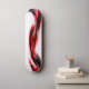 An abstract swirl in red, black and white.