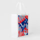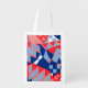 I own a lot of reusable grocery bags, but this one holds its box shape and simply stands up on its own even if there is nothing in it. Its stiffer than your regular reusable bag too, and the material is water resistant. I poured water on the exterior and it didn't penetrate inside to the other side. I'm buying a couple more. Wish I knew how durable these bags were or I would have purchased a few more with my initial order. I also like how it folds and buttons up when not in use, making it easy to put into a handbag or luggage. I haven't used this bag yet, as I purchased it for travel use, like when you're at the airport and need to small sturdy bag to place any airport purchases in, like food, souvenirs etc. I can tell you when you first see this bag, it looks very cheap, but after closer inspection of the material and the seams its a very sturdy reusable bag. I tested it out by putting some really heavy objects inside and I could not observe any stress to the bag at all. Another thing I like about it, is the fact the medium size that this is makes it easy to just carry it in your hand without the bottom of the bag scraping the ground, like most other bags do when you're short. That alone, deserves 5 stars. I just wish there were more colors to choose from! The PDX Airport Carpet printing looks just like the photo, and using this bag during travel might be a conversation piece when/if a native from Oregon happens to see it.
