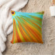Abstract red yellow orange green stripes on blue throw pillow