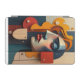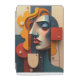 An abstract, multi-dimensional portrait, likely of a woman, rendered in a modern, geometric style with layered planes that give it a sculptural feel. It features a striking color palette of blues, orange, red, and cream, highlighting a face in profile with sharp features, full red lips, and a distinct eye, all surrounded by flowing, abstract hair and various geometric shapes.