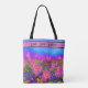 Abstract retro pink floral pink sunflower fields tote bag