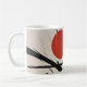A red circle with black lines of varying thickness, on a beige background creates a beautiful, abstract representation of the rising sun. Simple, elegant, minimalist art.