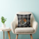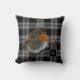 Modern pillow with abstract Robin bird photo art on black white buffalo plaid.