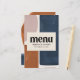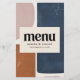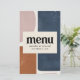 Abstract rust, navy + pink modern contemporary wedding menu design. Graphic hand painted design. Script text and bold typography.