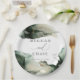 WEDDING PARTY PAPER PLATES | Modern Sage Green Watercolor wedding motif. Moody and ethereal , this beautiful hand painted watercolor illustration in shades of sage and emerald green with gold fleck highlights - Hand written script calligraphy is combined with a minimalist, contemporary style font. A trendy and modern look for all seasons. This is part of a wedding stationery collection with matching wedding accessories. © WhimsicalArtwork created for the BarefootBride™