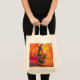 The printing came out very well, better than I had anticipated. The natural color fabric is sturdy with strong seams and comfortable handles. This tote fits easily over my shoulder. As it is filled, the bottom flattens out--very cool! I would buy this product again. This grocery tote holds a lot of groceries! The image quality was very good. The colors were a little darker than I had expected. The darkness may have been due to printing on a natural color fabric rather than on white. The cat design is attractively centered on the tote. The spirit of the design is very lively, just as it appears on the Zazzle website.
