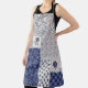 Abstract seamless delicate patchwork pattern, dark indigo blue and light beige floral lacy ornament from stylized rose flowers, leaves in Provence style. Textile design, batik paint, pillow embroidery