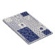 Abstract seamless delicate patchwork pattern, dark indigo blue and light beige floral lacy ornament from stylized rose flowers, leaves in Provence style. Textile design, batik paint, pillow embroidery