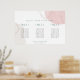Modern pastel abstract shapes in soft pink and cream with wavy lines decorate the top right and bottom left, with elegant simplistic typography for this seating chart. Suitable for a small wedding group of 30 guests with three tables of ten. Easily personalise with your guests' names and you can change the table numbers to your own words if preferred. Try to keep to a similar number of characters, but if you do slip over to another line, you can make the text smaller via the scale down option via the Customize further option. You can also choose this If you wish to change font styles and colors.