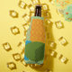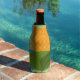 This bottle cooler has a mid-century modern design of a rectangle, an oval, and a parallelogram with empty circle and parallel lines overlapping them. Want different colors? Message me.
